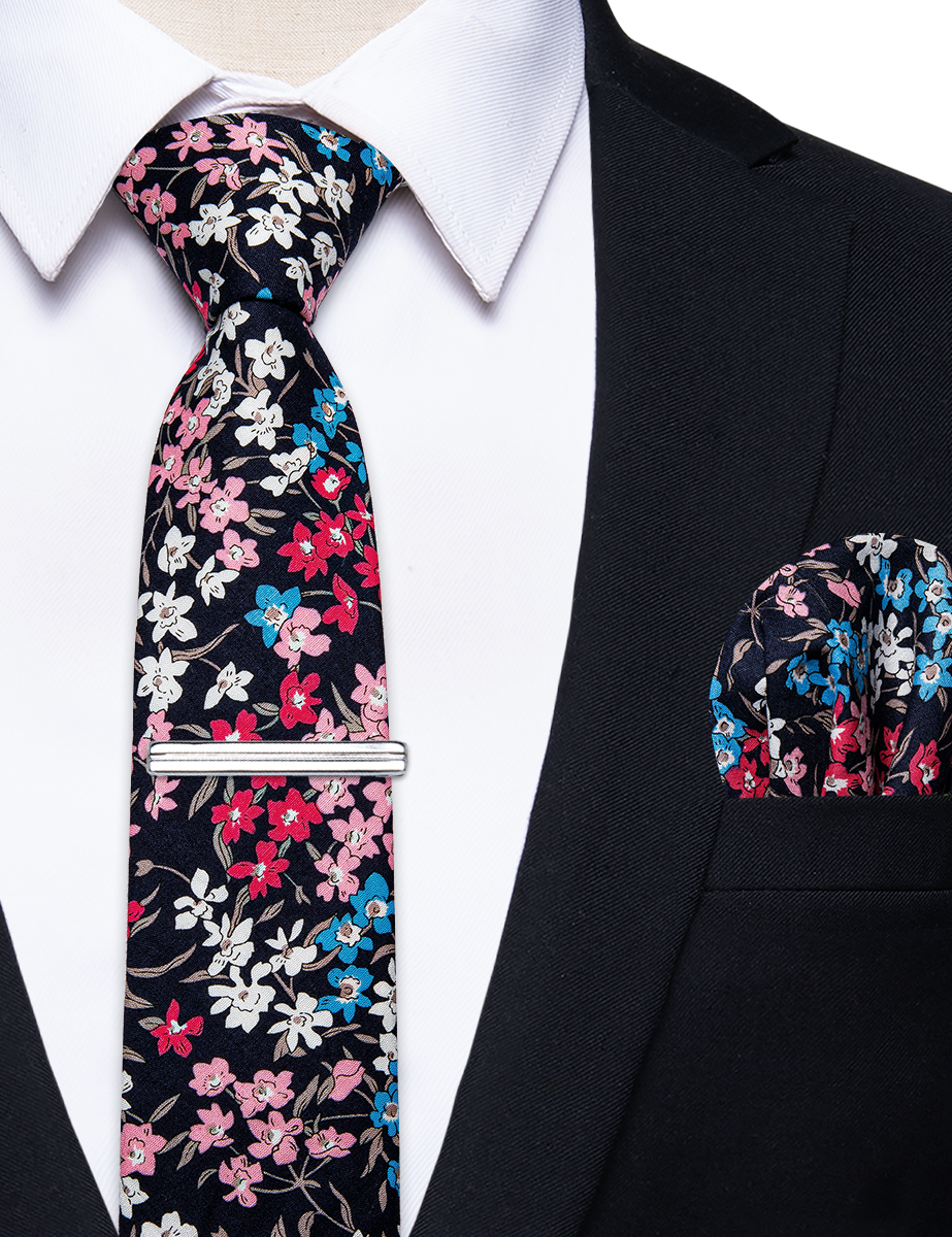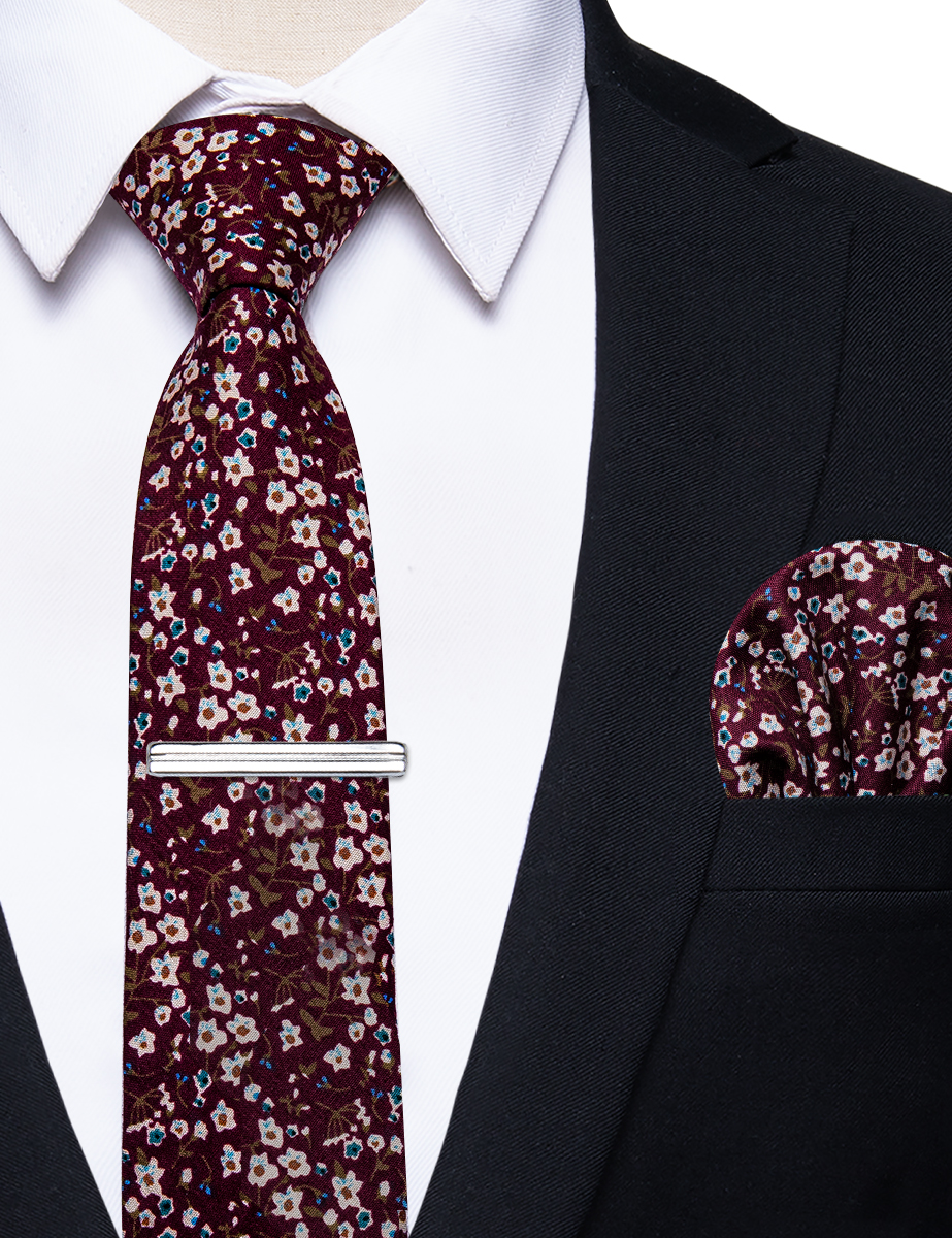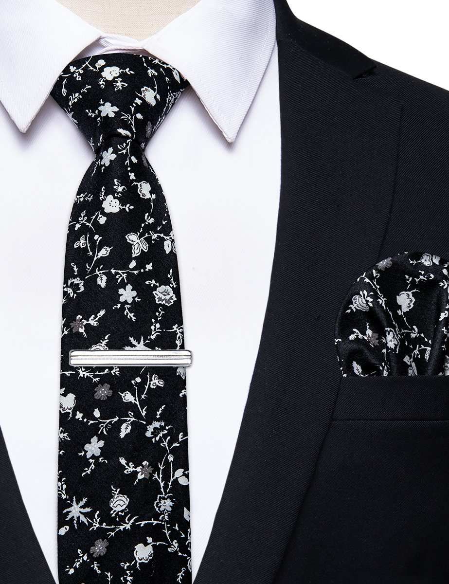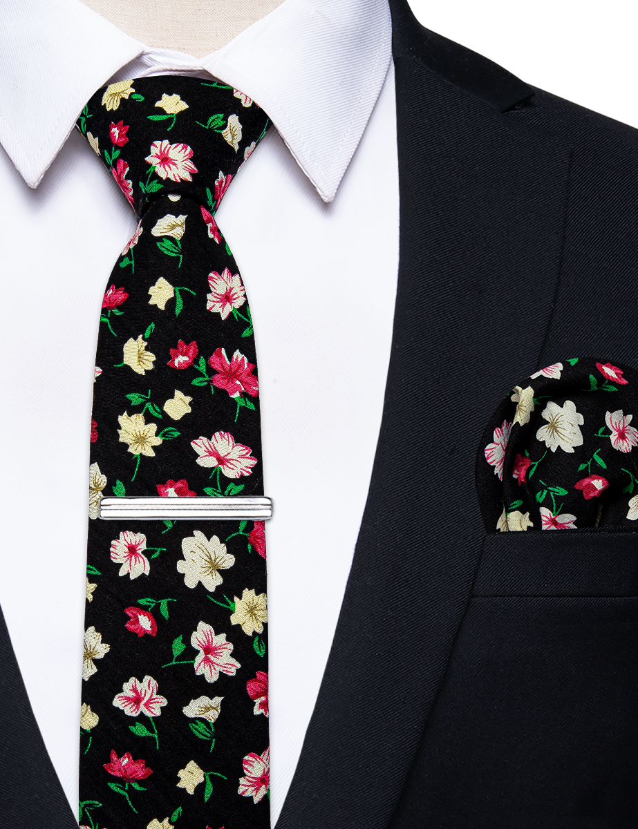 6.5cm uformelle slips med smale, blomstrete slips i bomull, lommetørkleklemmer, sett med herrebånd, fest og bryllupstilbehør