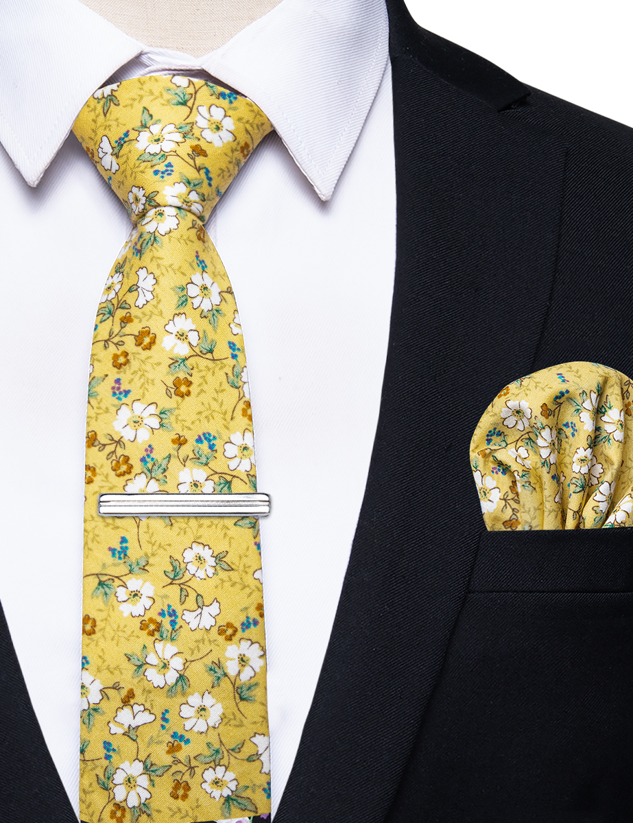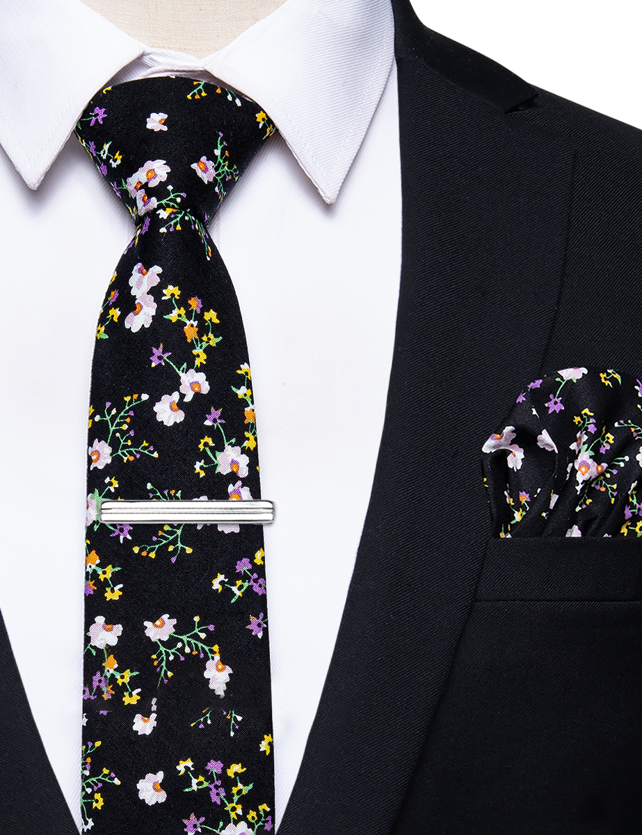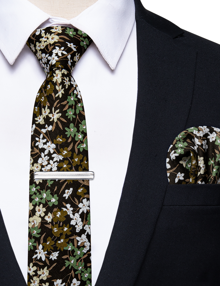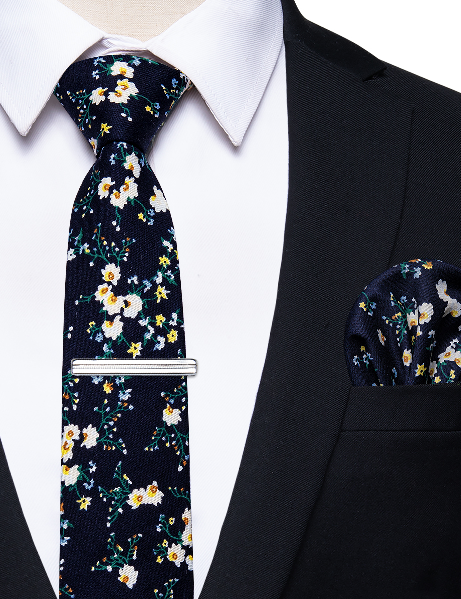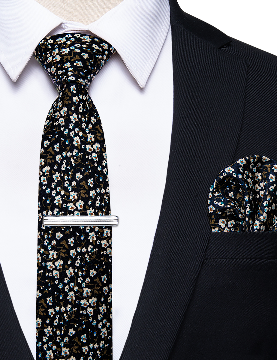 6.5cm uformelle slips med smale, blomstrete slips i bomull, lommetørkleklemmer, sett med herrebånd, fest og bryllupstilbehør