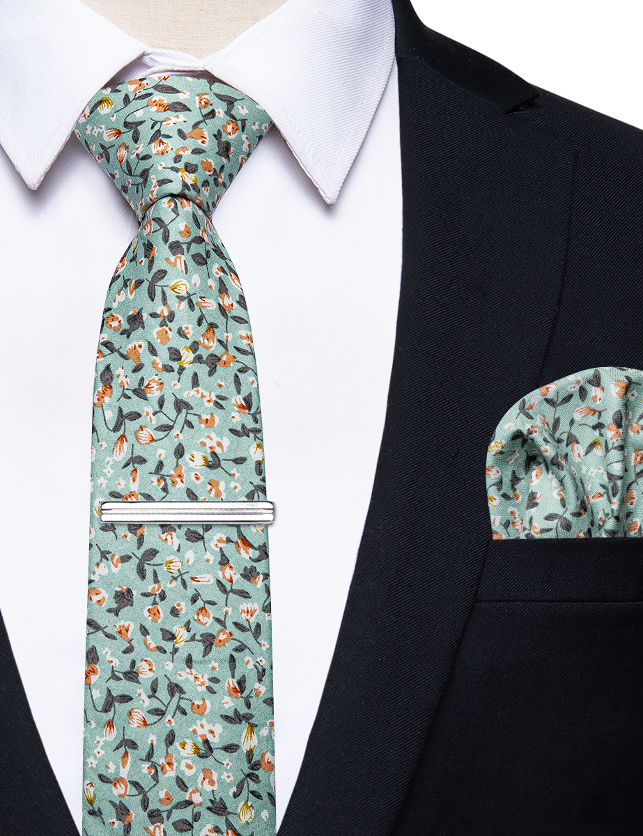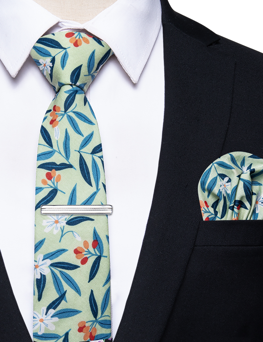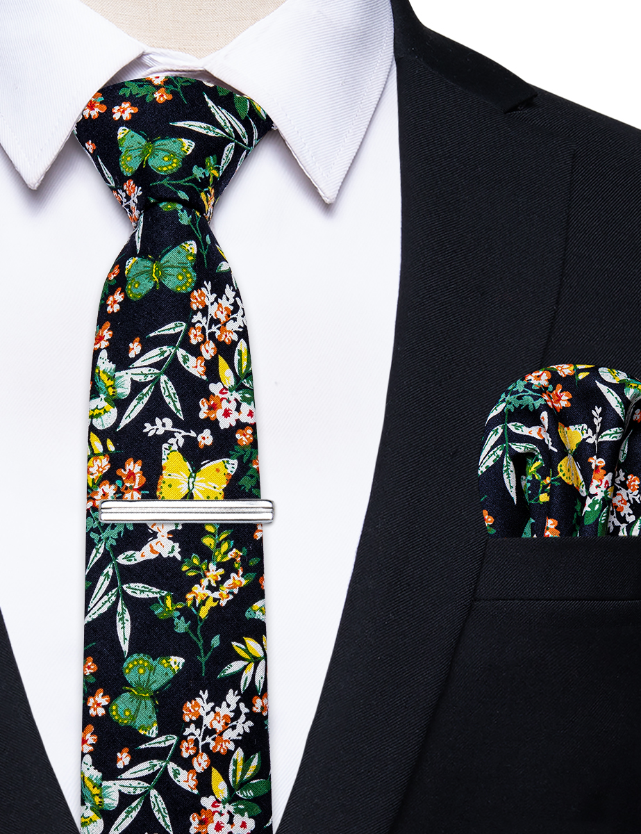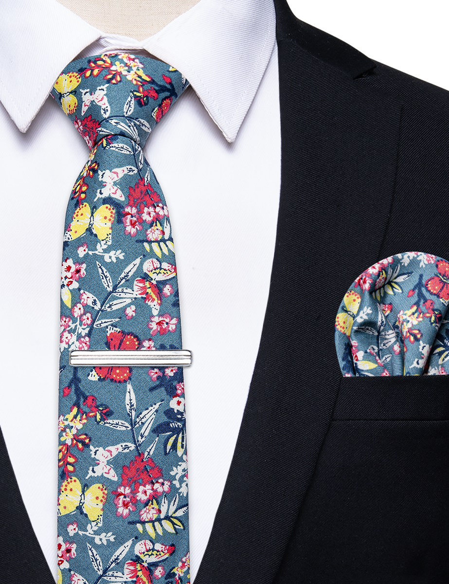 6.5cm uformelle slips med smale, blomstrete slips i bomull, lommetørkleklemmer, sett med herrebånd, fest og bryllupstilbehør