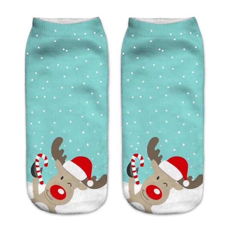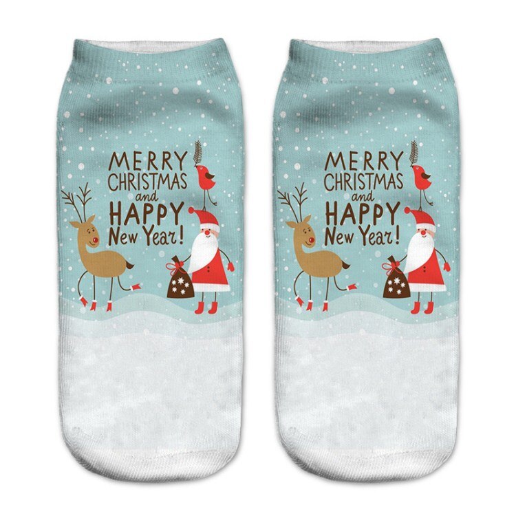Kvinner 3d printin julesokker unisex tegneserie elg snømann santa sokker kvinner low cut ankel julesokker calcetines mujer -086